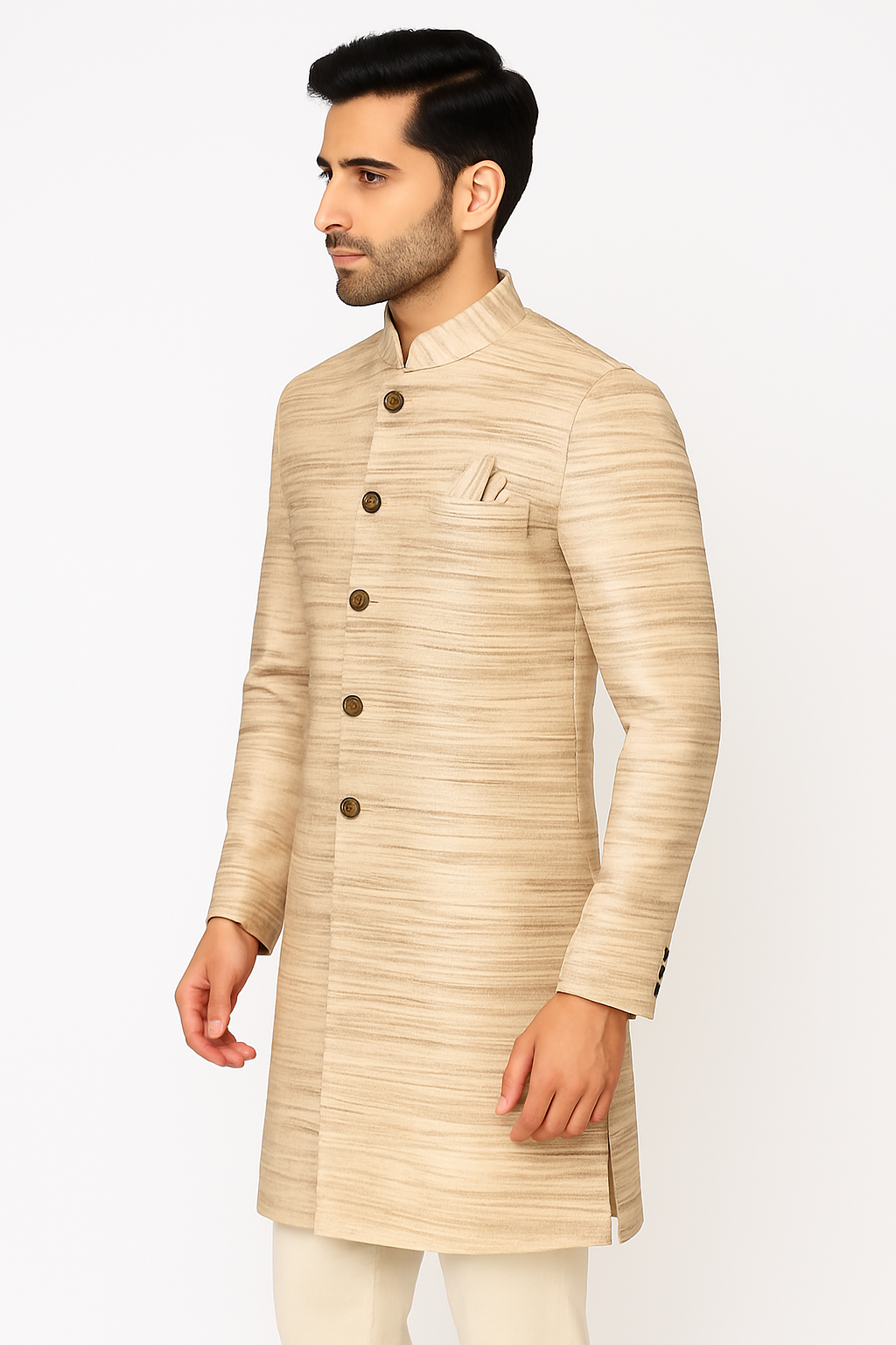 Pure Handwoven Tussar Silk Sherwani in Beige