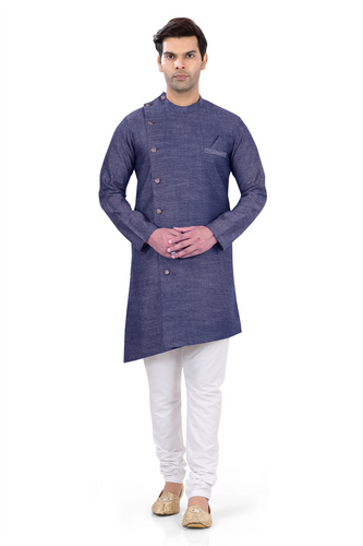 Banarasi brocade Silk Indo Western in Navy Blue - MOHJ32