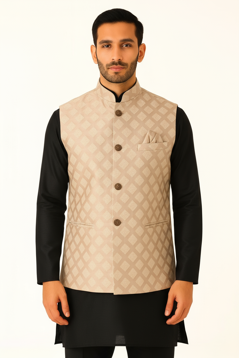 • Designed as a sleeveless Nehru-style jacket, it pairs perfectly over kurtas or shirts for weddings, festive occasions, or cultural events.