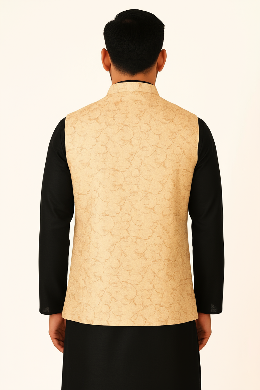 Designed as a sleeveless Nehru-style jacket, it pairs perfectly over kurtas or shirts for weddings, festive occasions, or cultural events.