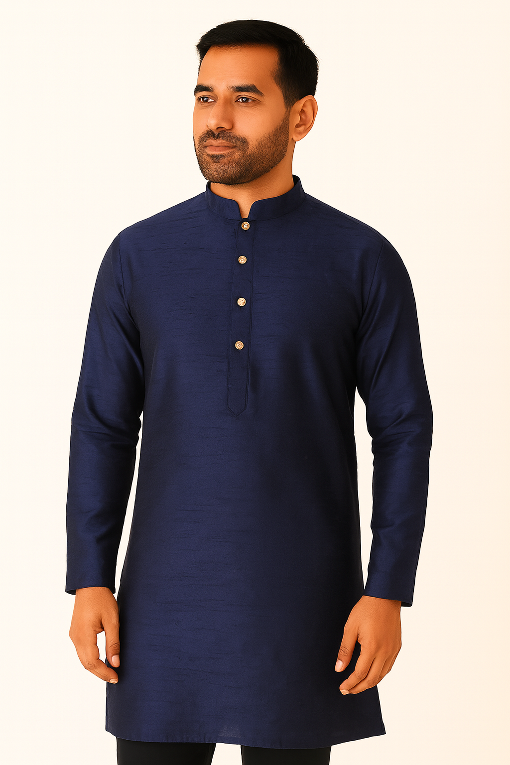 • Readymade Banarasi Dupion Silk Kurta in Navy Blue